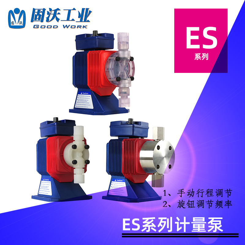 ES系列电磁计量泵能够完成精确的化药液添加,并且运行费用低。采用手动“开/关”控制,操作简便。具有性能可靠、效率高的优点。